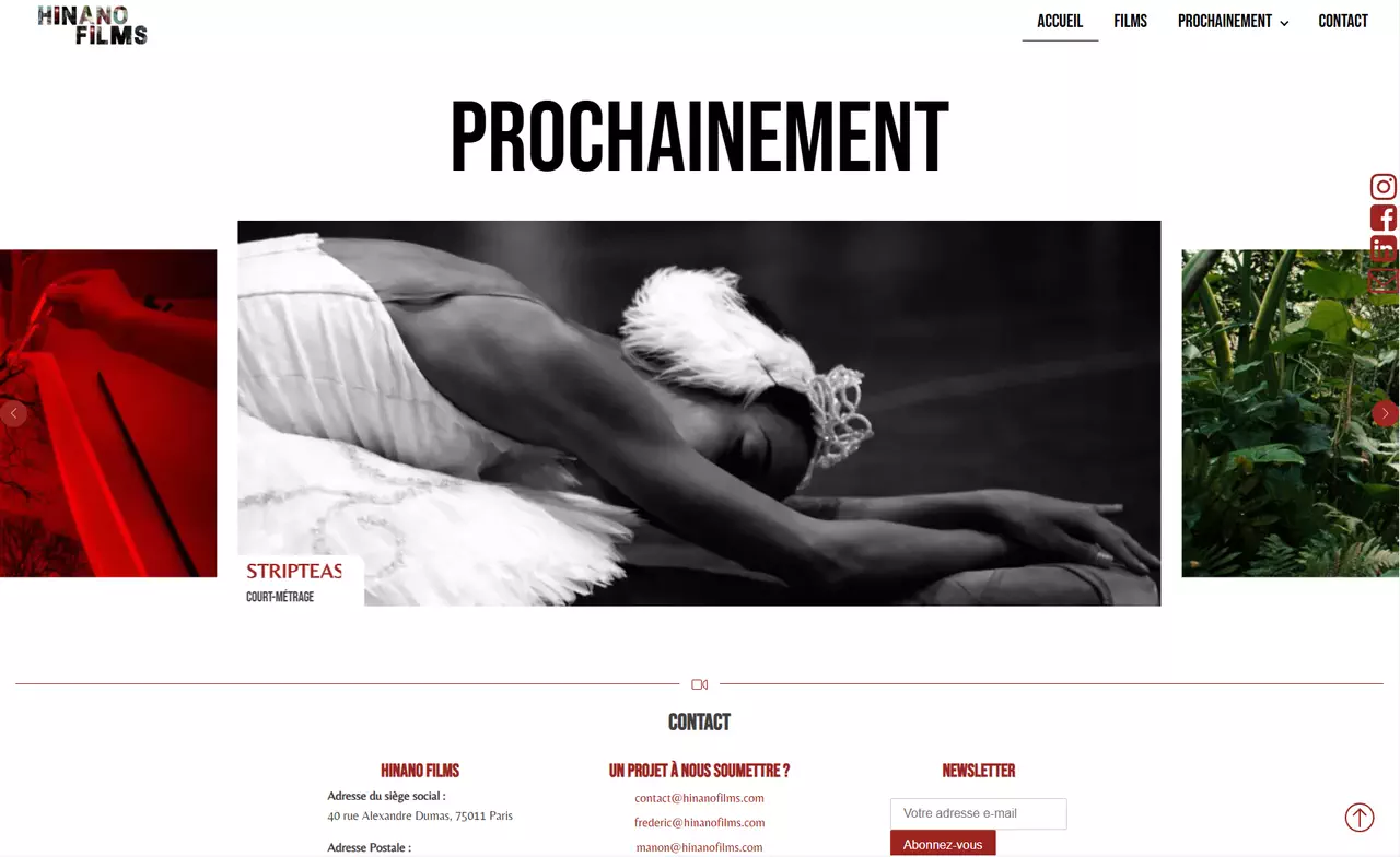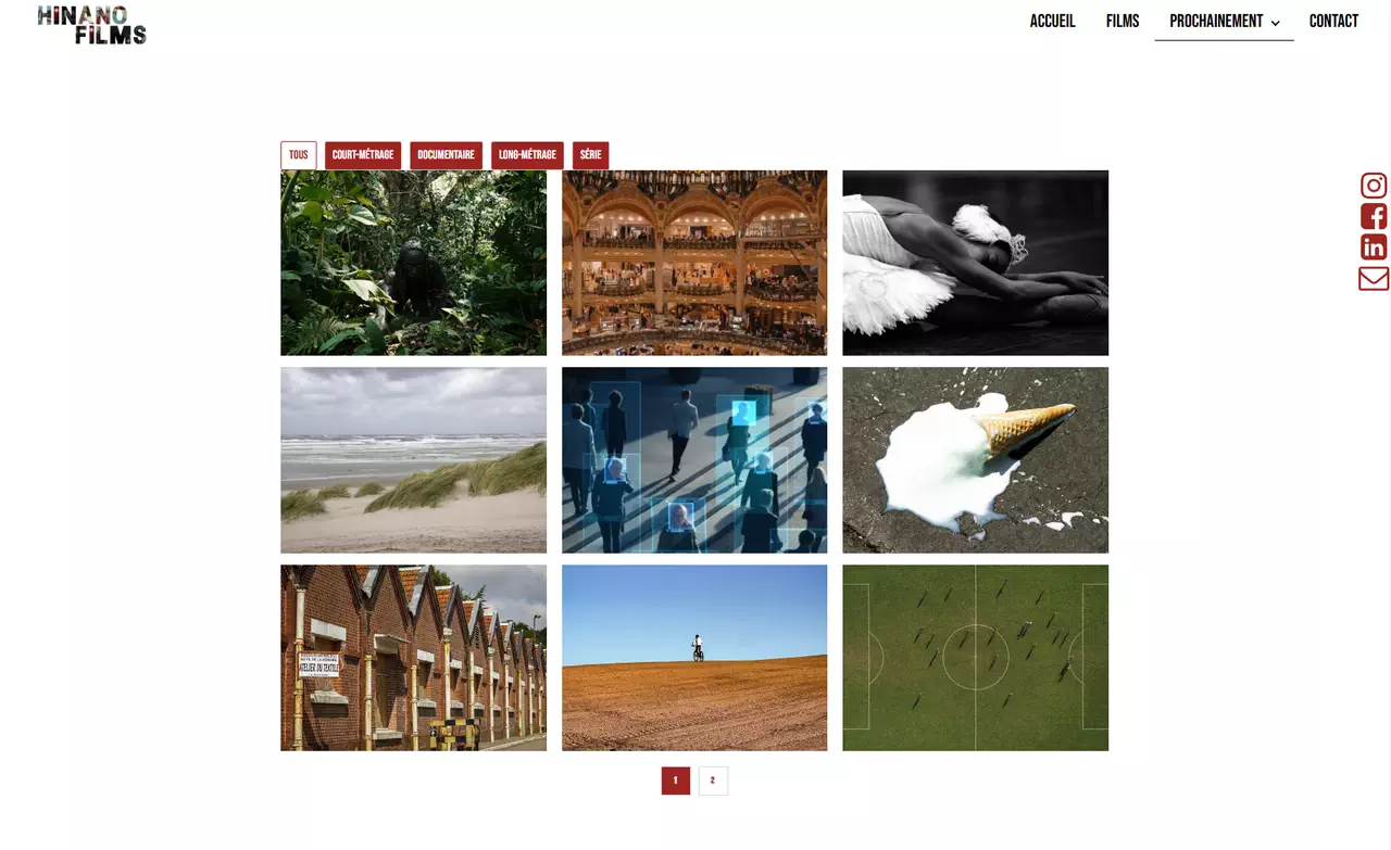 Sur la base d'indications fournis par le client (ambiances, fonctionnalités...), Intégration html/css/js et préparation des contenus du site vitrine - Onepage + portfolio - nécessaire à la présentation des références de productions audio-visuelles réalisées et/ou en cours et prestations de la société Hinano films.
